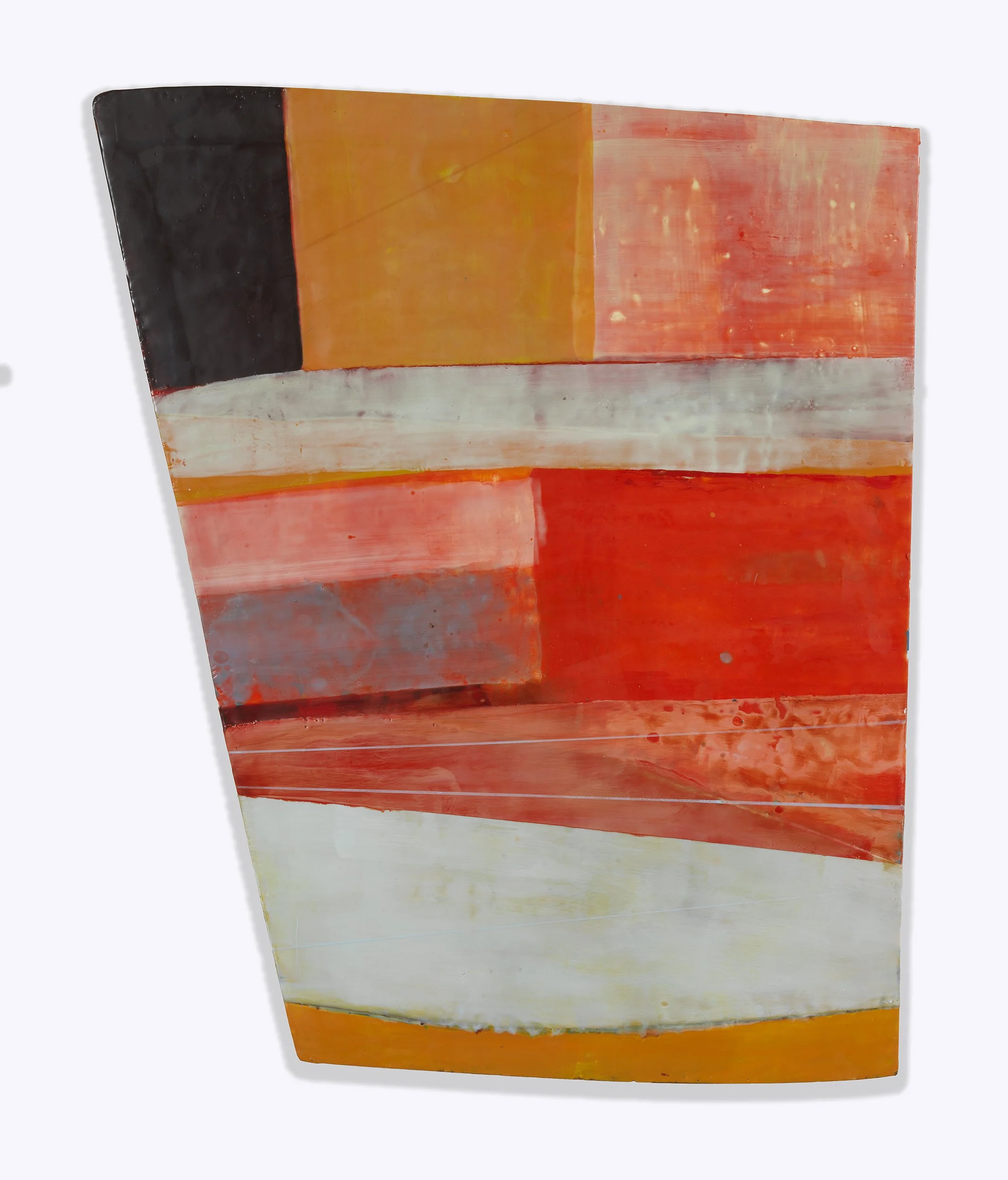 Hirst, Broadpaths, encaustic on shaped panel, 40 x 33, 2025